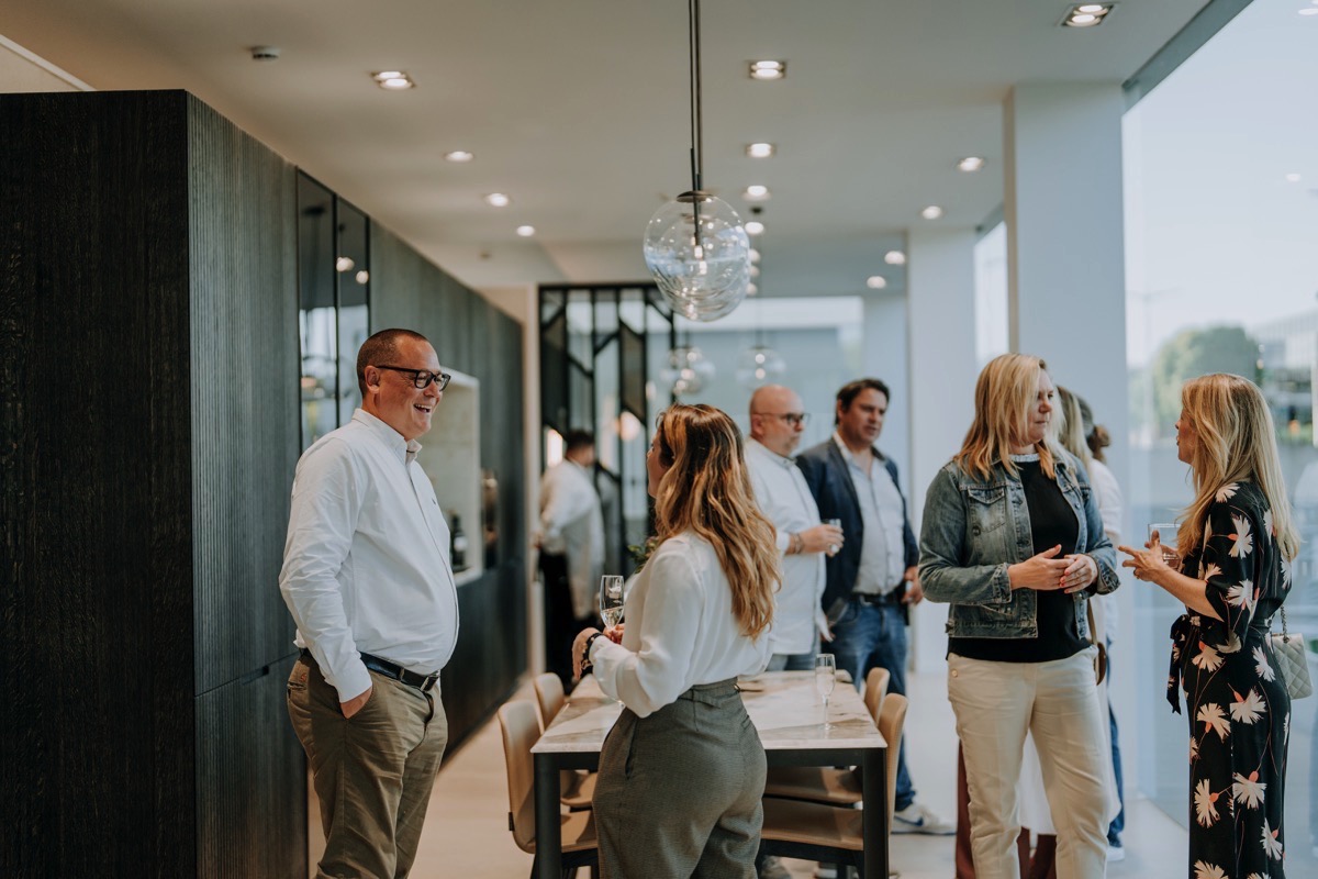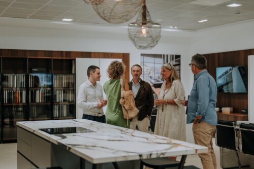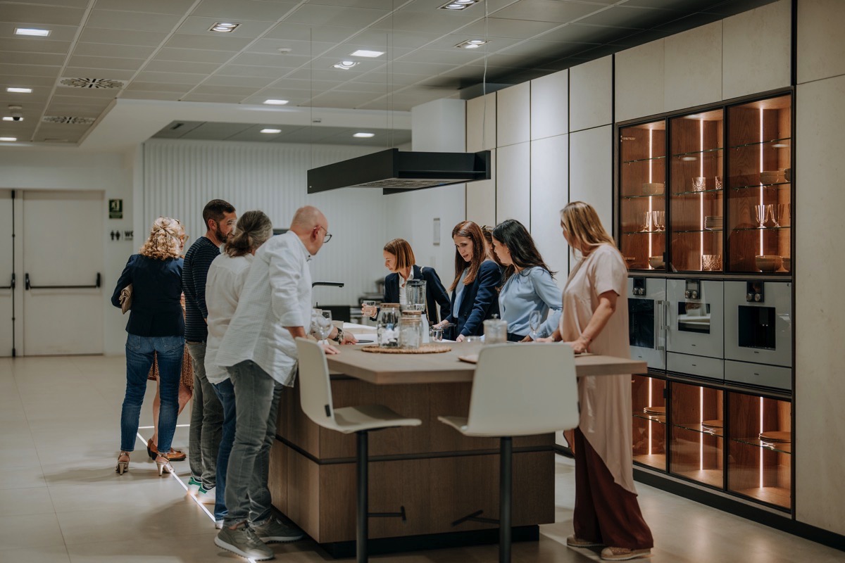 Die Mitarbeiter von Porcelanosa organisierten die Veranstaltung wie ein perfektes Uhrwerk, füllten die Champagnergläser und servierten Canapés – darunter köstliche Steak-Tartar-Kreationen, Paté, Maki und mit Schokolade überzogene Nüsse. Die Gastfreundschaft des Unternehmens fand vor dem Hintergrund eines beeindruckenden Küchen- und Baddesign-Showrooms statt, der einen Einblick in die renommierten, hochwertigen Produktlinien des Unternehmens bot.