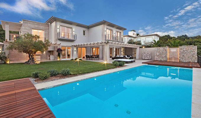 Diese Immobilie im Südwesten Mallorcas sticht selbst unter so vielen anderen High-End-Villen noch heraus. Auf einem üppigen Hügel mit Blick auf die exklusive Hafenstadt steht die mehrstöckige Immobilie, die sich durch ein modernes Design und dezenten Luxus auszeichnet.