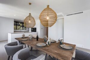 Es ist aufgeteilt in einen großzügigen offenen Wohnbereich mit einer geräumigen Siematic-Küche, Hauptschlafzimmer mit en-suite Badezimmer mit Meerblick und einem großen Ankleidezimmer, sowie 3 geräumige Schlafzimmer mit en-suite Badezimmern. Jedes Schlafzimmer hat eine eigene Terrasse.