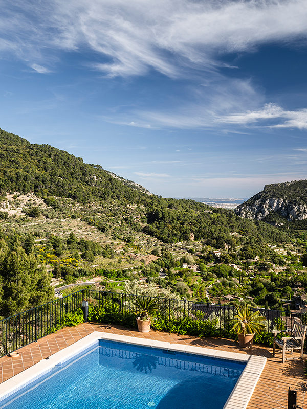 Ein abgelegener Rückzugsort in den Bergen mit atemberaubender Aussicht, üppigen Gärten, einem Swimmingpool und bequemem Zugang zu Deià – eine ideale Wahl im Tramuntana-Gebirge.