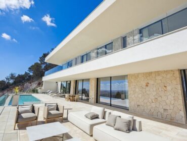 Neu gebaute Villa in Port Andratx mit vier Schlafzimmern en suite, Panoramablick auf Hafen und Meer, Pool, Terrassen und vollständiger Privatsphäre.