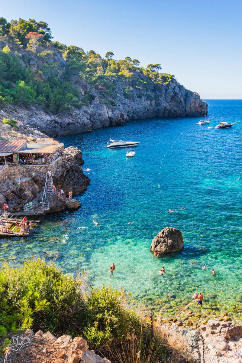 Tagsüber könnten Sie in einem einfachen Chiringuito fangfrische gegrillte Garnelen kosten, die Sie sich am Vormittag beim Schnorcheln im kristallklaren Wasser verdient haben, und abends können Sie Cocktails schlürfen in einem schicken Puro Beach Club. Gönnen Sie sich ein Frühstück mit Blick auf den pulsierenden Hafen von Portixol und ein Abendessen in einem Seafood-Restaurant beim Sonnenuntergang in der Cala Deia.