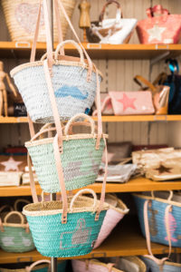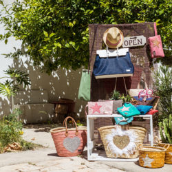 Im Atelier, das zugleich Büro, Lager und Ideenzelle ist, kann man die neuesten Taschenmodelle modeentdecken. Magda Llompart greift ins Regal und stellt ihre zwei Sommer-Favoriten auf den Tisch: Eine Schultertasche aus silberfarbigem Leder mit geflochtenen Schulterriemen und einem großen Stern auf der Vorderseite, sowie ein typisch mallorquinischer Einkaufskorb aus Stroh, sonnengelb gefärbt und geschmückt mit einem Peace-Zeichen sowie einem Federkranz rund um die Öffnung. Strohtaschen, auf spanisch cesta, liegen im Trend. Zahlreiche Modeblogger haben die Taschen, erhältlich mit kurzen und langen Ledergriffen bereits im Einsatz und jetten damit von einem Traumziel zum nächsten.