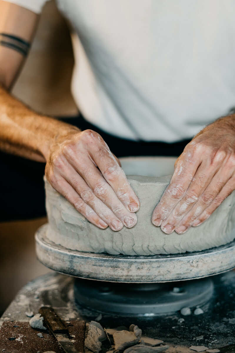 Jedes Keramikstück von Jaume wird in seiner Werkstatt in der Nähe von Ses Salinas sorgfältig hergestellt und dann in einem Ofen bei über 1000 Grad erhitzt. Wenn viel los ist, ist sein kleiner Raum voll mit Tausenden von Stücken, die sorgfältig zum Trocknen und Polieren aufgestellt werden. In ruhigeren Zeiten hütet Jaume seine Schafe und pflegt mit seiner Partnerin, der Textilkünstlerin Adriana Meunié, die örtliche Landschaft. „Alle Regeln sind in deinem Kopf. Ich nehme jeden Tag, wie er kommt, und teile meine Leidenschaft mit Adriana, aber letztendlich gehe ich auch meinen eigenen Weg“, sagt er, während er seine Töpferscheibe ausschaltet und über seine Arbeit nachdenkt. Eine weitere Kreation, die einen bleibenden Eindruck hinterlassen wird.