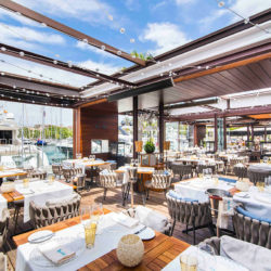Das schicke, ganzjährig geöffnete Restaurant direkt am Wasser eröffnete im Oktober 2014 dort, wo die „goldene Meile“ der Stadt auf das Mittelmeer trifft.