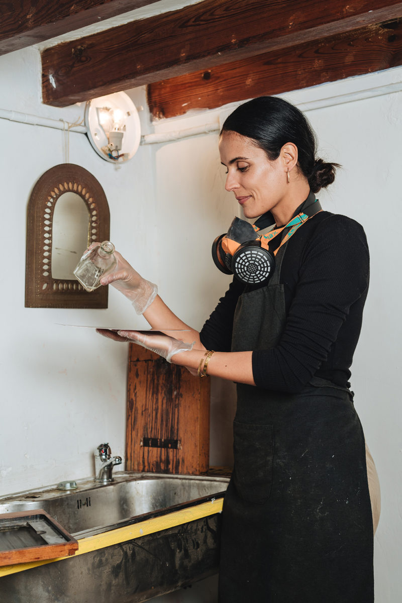 In ihrem Atelier in der Altstadt von Palma zeigt uns Lola Álvarez – wie ihr Künstlername lautet – ihren wertvollsten Schatz, eine Pezval-Linse von 1860. Das Atelier ist schlicht und hat eine lockere Atmosphäre – weit weg von ihrem früheren Leben in Los Angeles. Dort wurde Eva, ihre erste Tochter, geboren, aber vor 11 Jahren zog sie mit ihrer Familie nach Mallorca. „Im kalten Meer zu schwimmen, zu wandern und die Kraft der Schönheit der Natur zu spüren, ist, was meine Kreativität weckt und unzählige Ideen zum Fließen bringt“, sagt sie sanft, aber bestimmt.