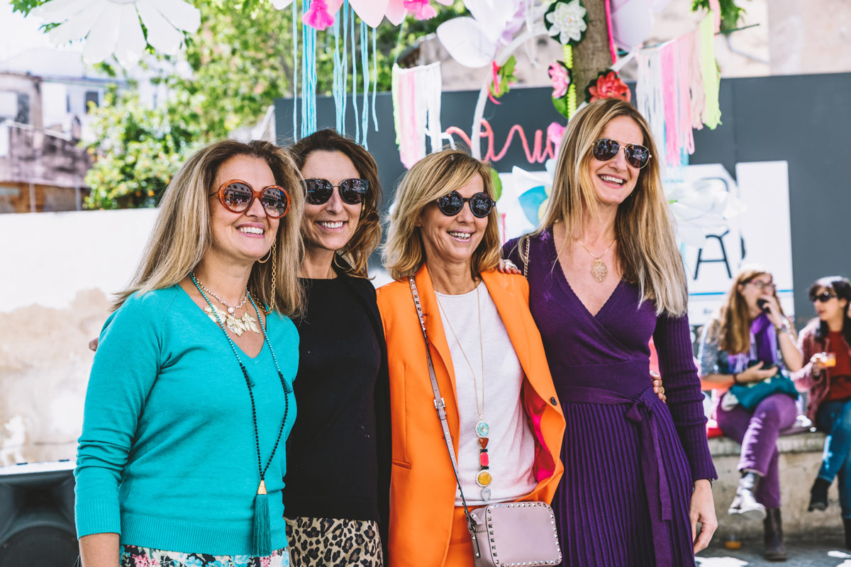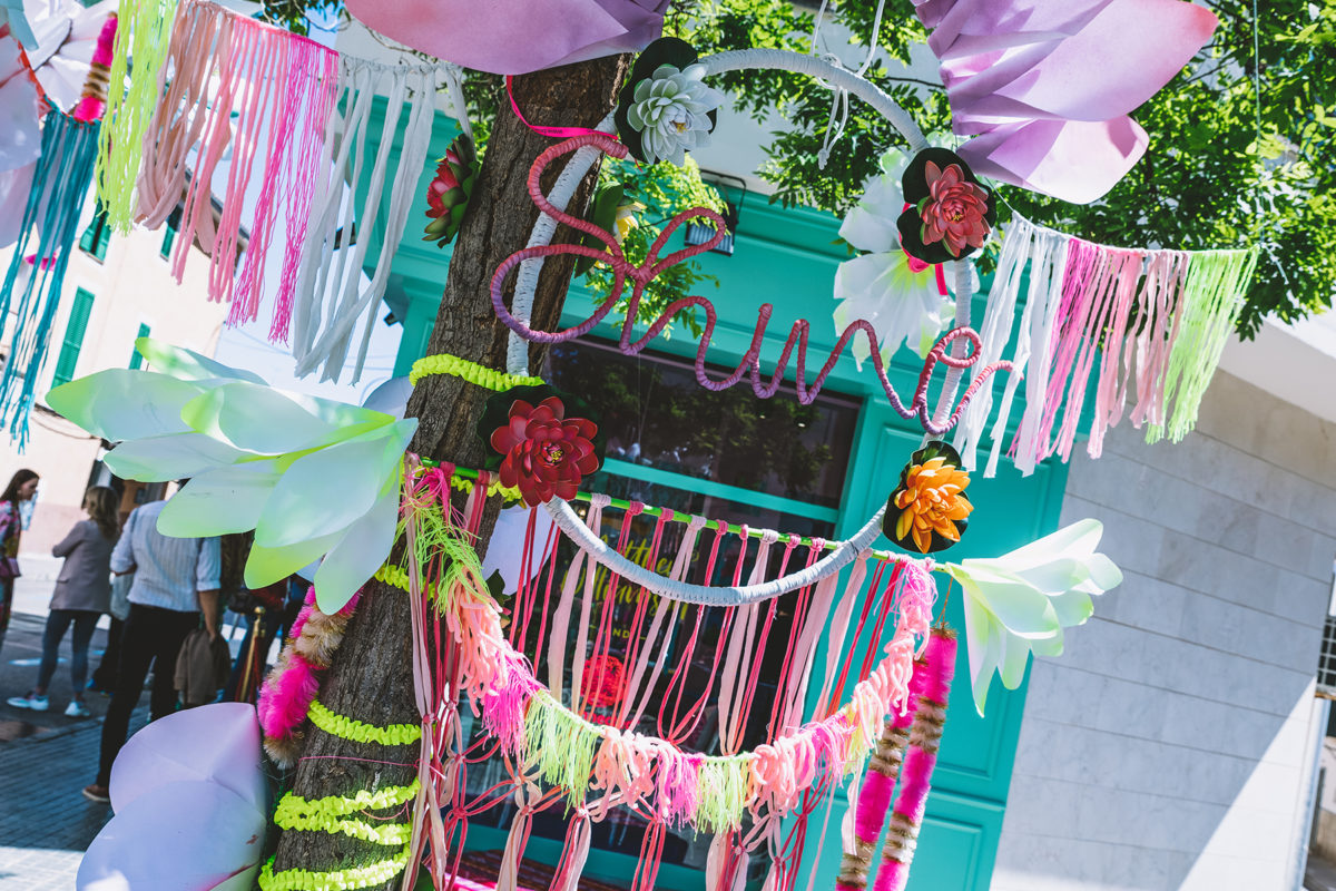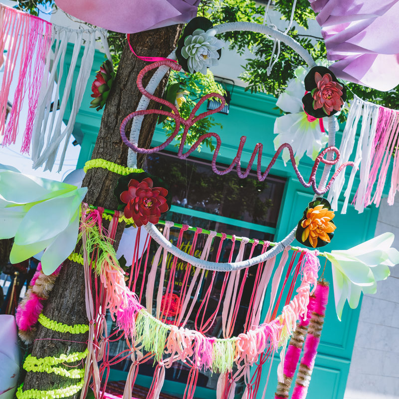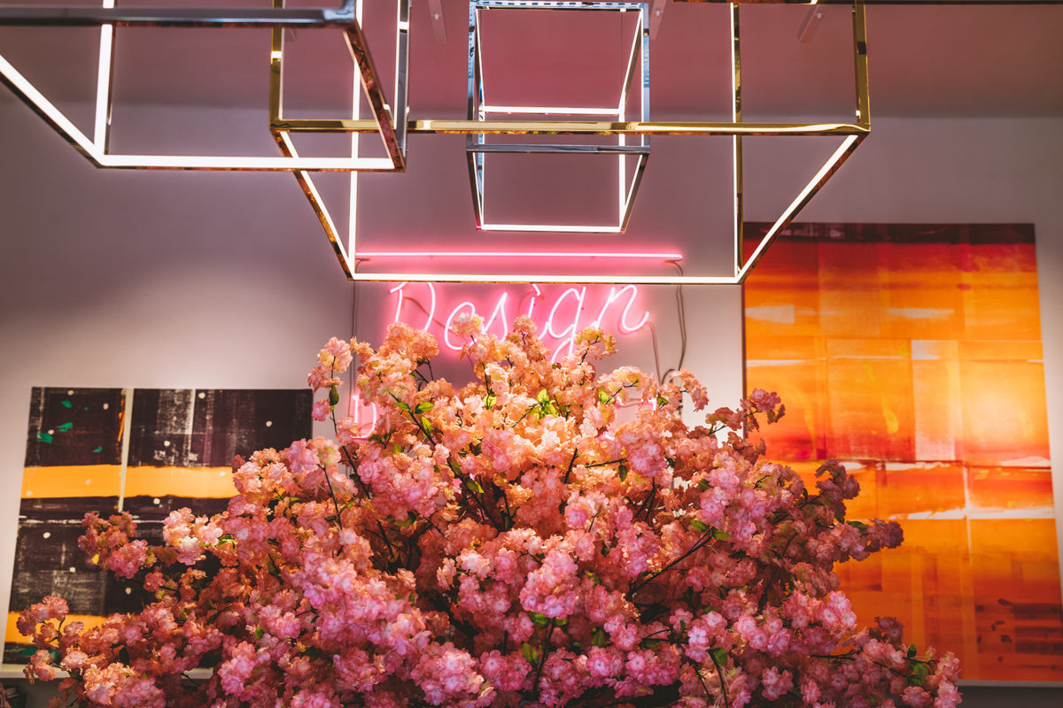 Ein Großteil der Veranstaltung findet draußen in der Nachmittagssonne statt, wo sich der Bconnected Store und der neue Showroom direkt gegenüberstehen. Riesige Neonblüten und himmelblaues Band schmücken die Straße, auf der sich die Gäste gerne unterhalten und die weichen Beats des DJs genießen. Christine glüht in orangefarbenen Gewändern und lächelt, als sie nach Bconnected´s Beziehung zu Matthew gefragt wird. „Ehrlich gesagt bin ich so stolz darauf, dass Matthew zu uns gekommen ist, er schenkt unserem Leben und unserer Marke noch mehr Farbe.“