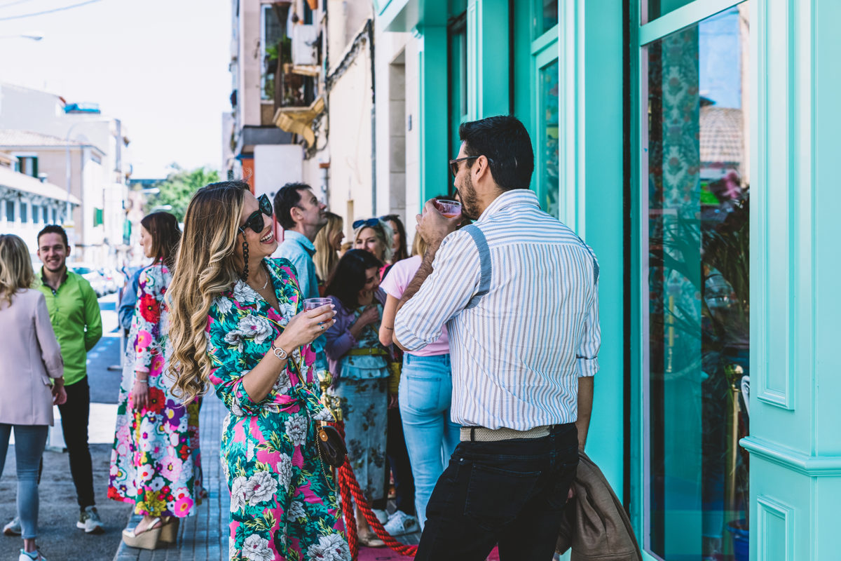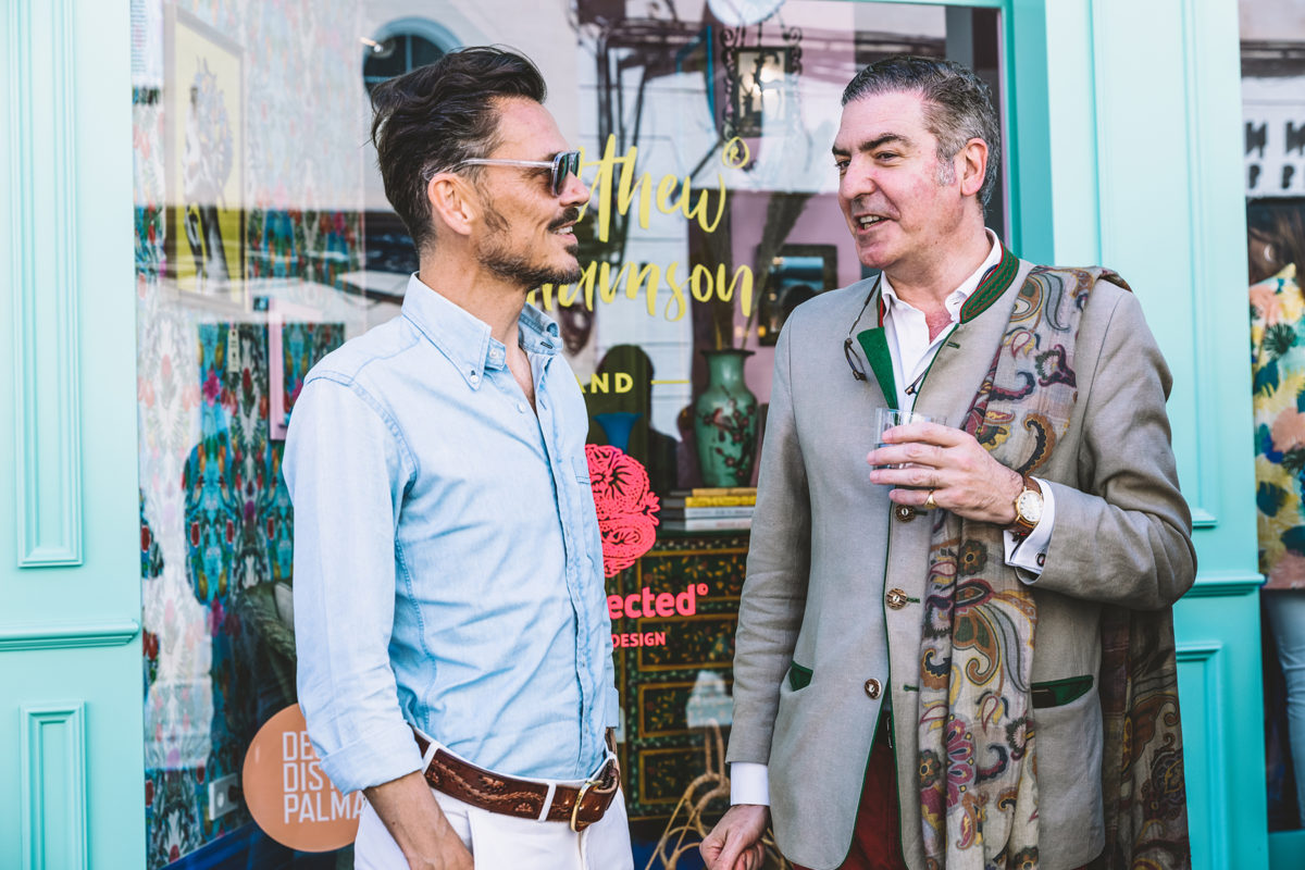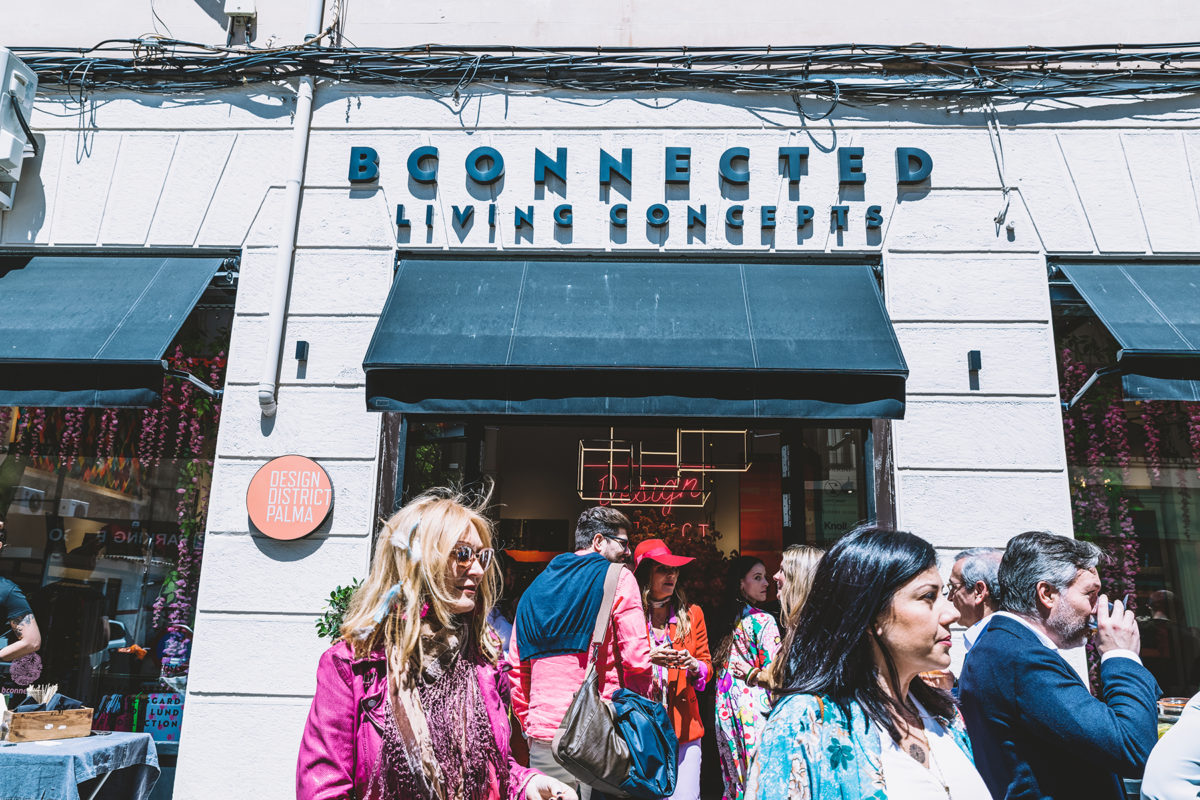 Vor dem Hintergrund seiner Tapete „Deya-Meadow“ stehend, ist es nicht schwer Matthew zu erkennen, der mit breitem Lächeln und einem pastellblauen Hemd zur Feier erschienen ist. „Heute ist der Höhepunkt von neun Monaten Planung, Kreativität und viel harter Arbeit. Aber es ist wirklich ein fröhlicher Tag, um einen neuen Raum für Innenarchitektur in Palma zu feiern. Es ist eine Ehre und ich fühle mich sehr geschmeichelt, ein Teil von Bconnected zu sein.”