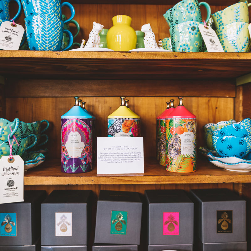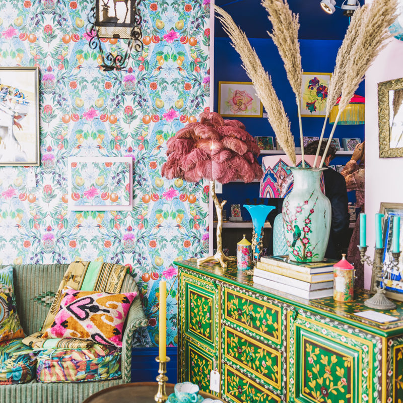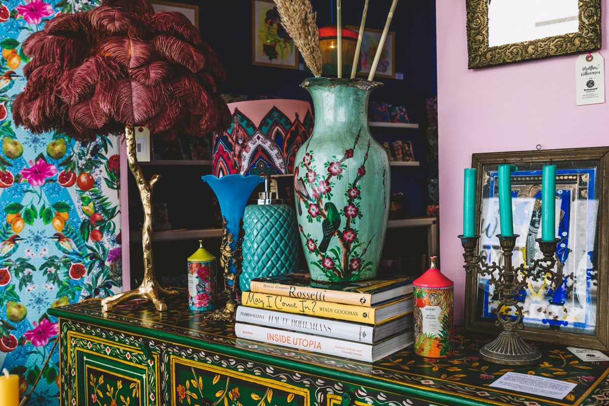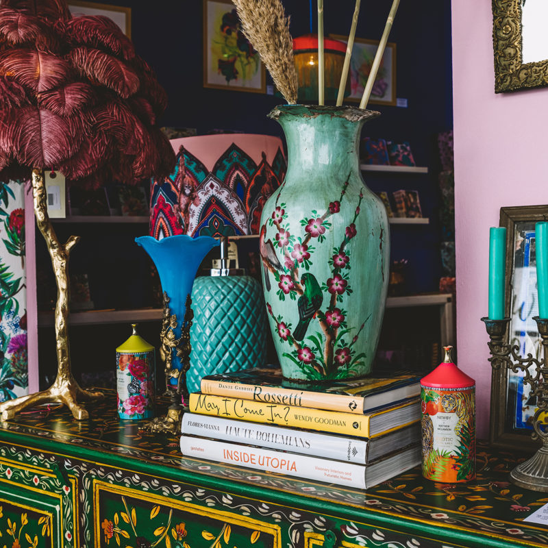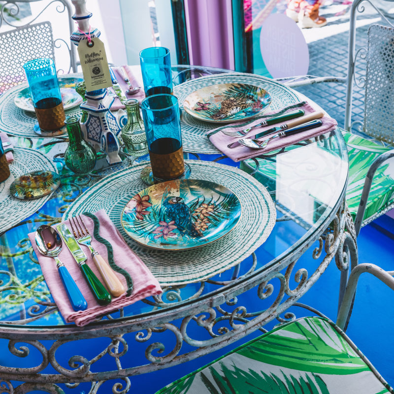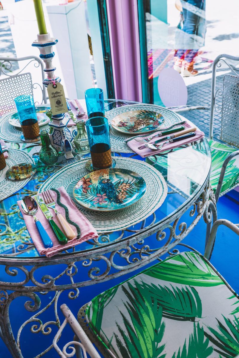 Die beiden Designer haben erfolgreich eine Kollektion zusammengestellt, die sich in Design und Layout deutlich lebendig anfühlt. Der gesamte Showroom strahlt in lebendigen Tönen und zieht Sie von einem Objekt zum nächsten. Von kleinen Feinheiten (Teetassen in Form eines Blütenblattes und luxuriösen Keramikkerzen) bis hin zu größeren Statement-Stücken (eine wunderschön verzierte Vitrine), gibt es viele Inspirationen für diejenigen, die ihrem Zuhause Farbe verleihen möchten. Die beiden Designer haben ihren Stil perfekt aufeinander abgestimmt und verwenden Komplementärfarben, um etwas zu kreieren, das wie aus einem tropischen Traum anmutet.