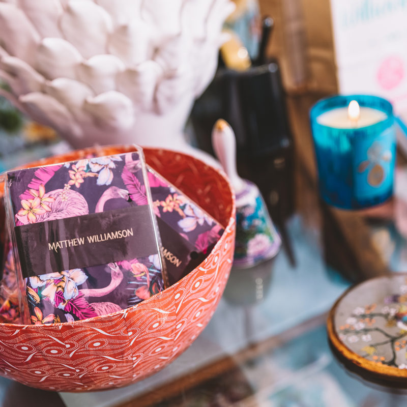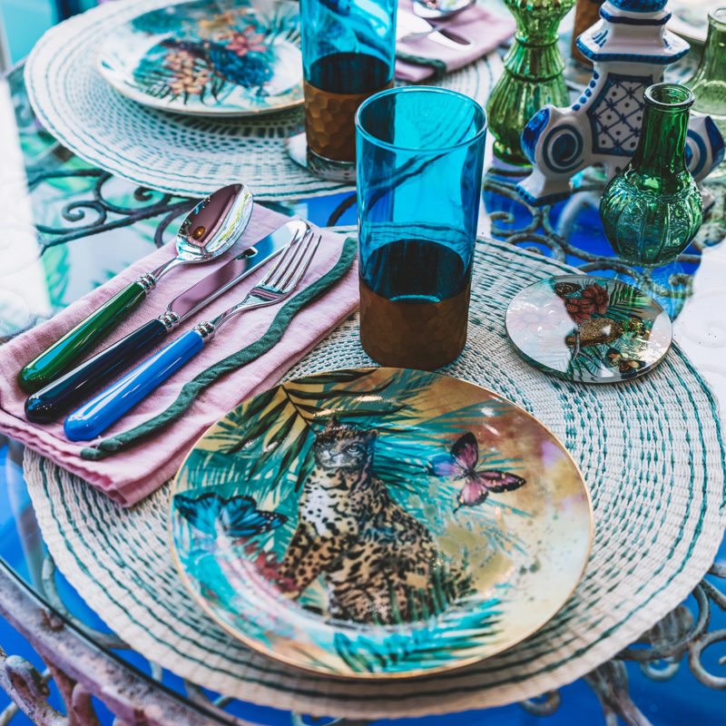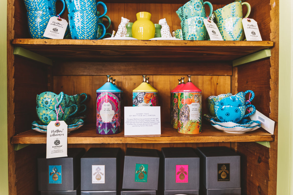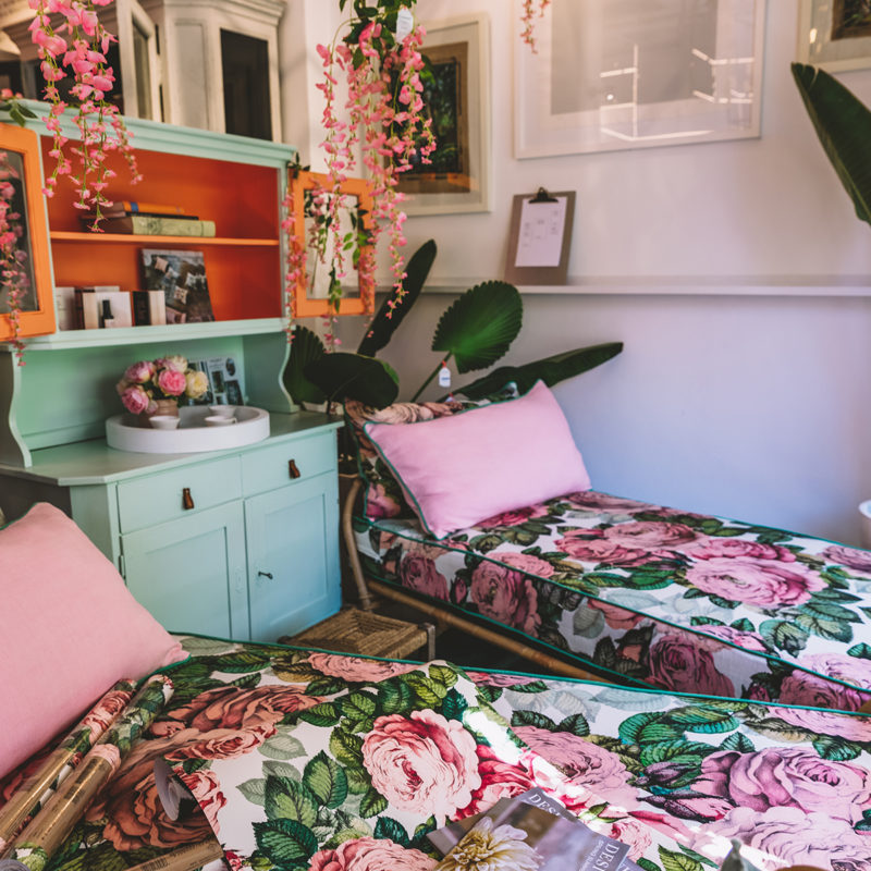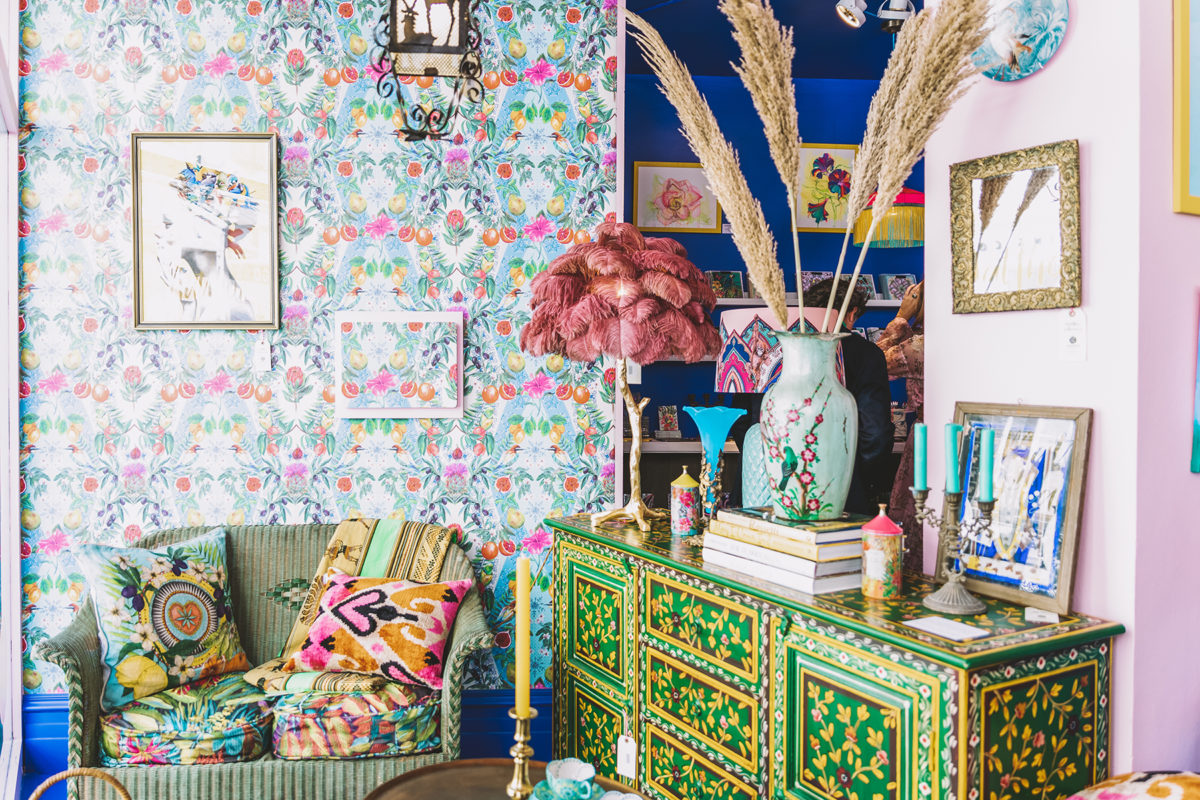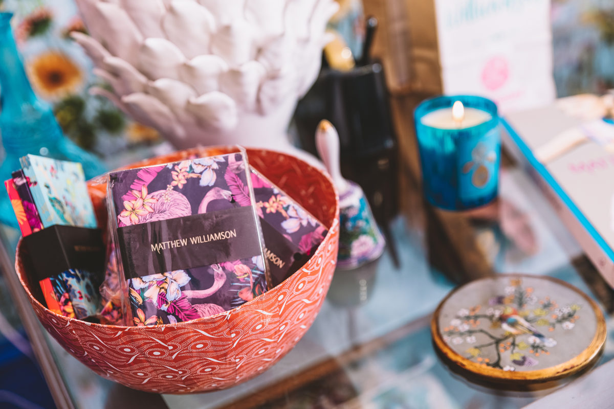 Die beiden Designer haben erfolgreich eine Kollektion zusammengestellt, die sich in Design und Layout deutlich lebendig anfühlt. Der gesamte Showroom strahlt in lebendigen Tönen und zieht Sie von einem Objekt zum nächsten. Von kleinen Feinheiten (Teetassen in Form eines Blütenblattes und luxuriösen Keramikkerzen) bis hin zu größeren Statement-Stücken (eine wunderschön verzierte Vitrine), gibt es viele Inspirationen für diejenigen, die ihrem Zuhause Farbe verleihen möchten. Die beiden Designer haben ihren Stil perfekt aufeinander abgestimmt und verwenden Komplementärfarben, um etwas zu kreieren, das wie aus einem tropischen Traum anmutet.