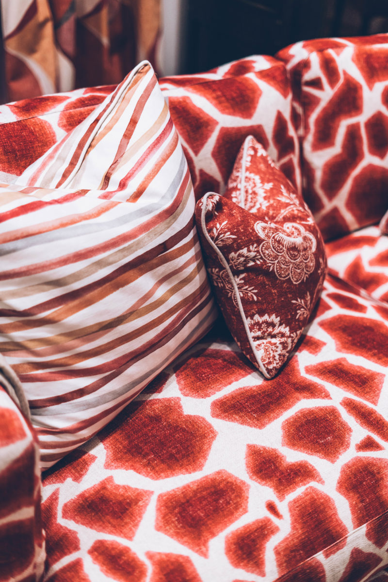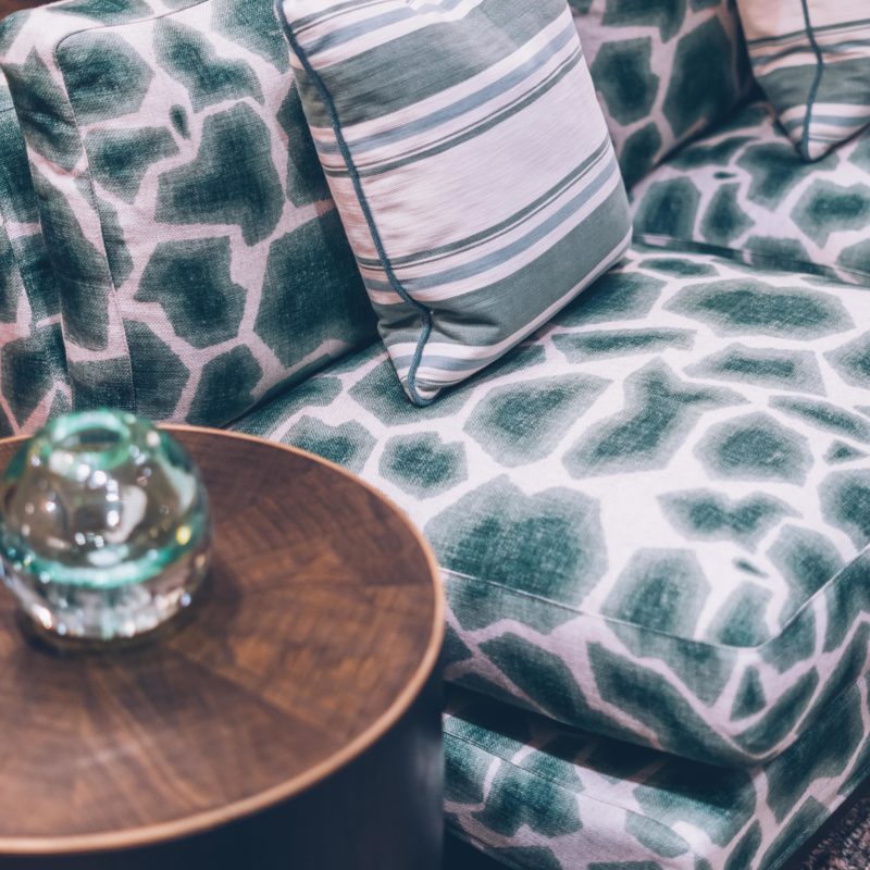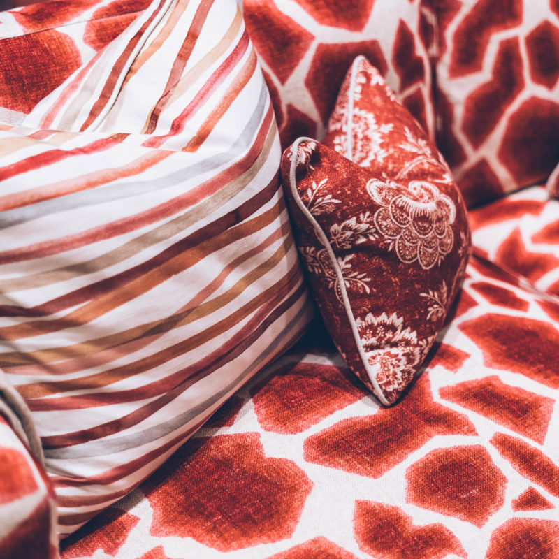 Das Textil-Design ist inspiriert von der beeindruckenden Landschaft von Mallorca, die Klas in Form, Farbe und Textur der Stoffe verwendet. Die Farbskale umfasst erdige Braun- und Rottöne bis hin zu markantem Blau und Grün, angeregt von der facettenreichen Landschaft Mallorcas mit Felsen, Bergen, Sand und Meer.