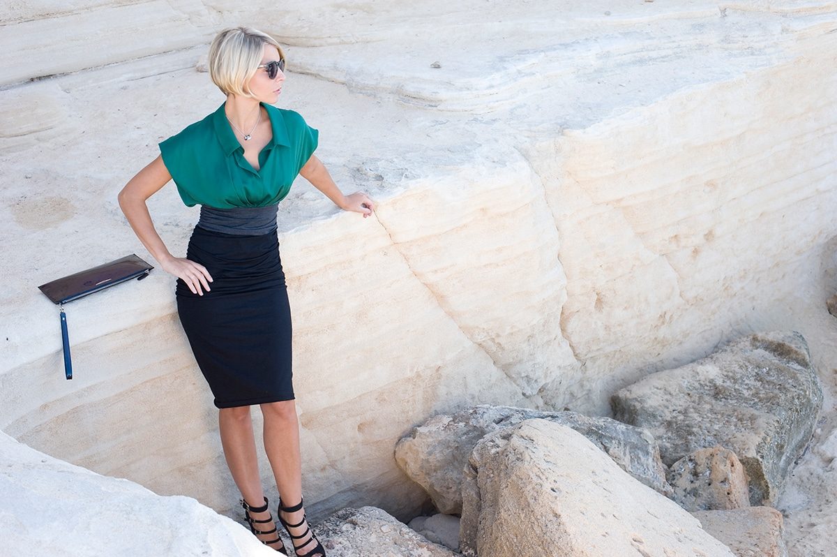 - Das grün-schwarze Paula Ka Kleid von Kidama 600 € – tagsüber super bequem oder abends mit High-Heels und einer schicken Clutch.