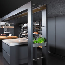 Das neue Küchenkonzept von Birgit Müller, „work´s“, zielt darauf ab die Küche zu kultivieren, zur Werkstatt zu erheben, in welcher das Handwerk Kochen seinen uneingeschränkten Platz hat; Arbeitsgeräte und Ausrüstung sollen erreichbar sein, Zubehör schnell und leicht zugänglich, für Effizienz platziert.