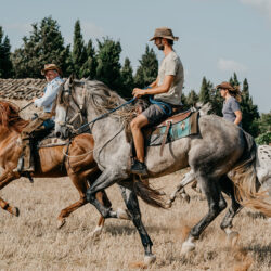 „Ich habe auf einem ehemaligen Rennpferd reiten gelernt“, sagt Xavi, der Sohn von Joan. Er ist derjenige, der das Projekt auf den Weg gebracht hat, angetrieben von einer Leidenschaft, die ihm in der Kindheit eingeflößt wurde. „Als er 10 Jahre alt war, stand er immer früh auf und war bereit für unseren Ausritt“, erinnert sich Joan, „als er aber sechzehn wurde, musste ich ihm ein Glas Wasser über den Kopf schütten. Sein Gesicht war immer bemitleidenswert.“ Xavi lacht bei der Erinnerung an seine jugendlichen Kater, „aber sobald ich auf dem Pferd saß, war alles in Ordnung“, fügt er hinzu.