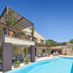 Der Außenbereich der Villa hinterlässt mit seinem atemberaubenden Panoramablick auf die Berglandschaft einen bleibenden Eindruck. Eine große Terrasse mit Pool und eine Sommerküche laden zum Verweilen im Freien ein.