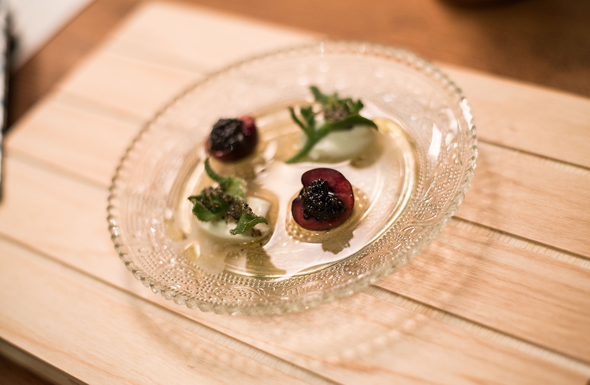 Die zahlreichen Highlights des unvergesslichen Dinners beinhalteten: ein sehr schmackhaftes Tomatenwasser Gazpacho mit Kaviar-Kirschen, Crème fraîche und gefrorenen Kräutern ‘escarcha’ (als Tribut an Joël Robuchon), Rodrigos selbstgemachte Butter und köstliches Brot, sowie das ausgezeichnete ‘quinotto’ – ein Risotto aus Quinoa. Wir kosteten ungewöhnliche Zutaten, wie z.B. Huacatay (peruanische, schwarze Minze), Spirulina-Algen und Chlorella, Oxalis (Sauerklee), Meeresfenchel, Wasserbrotwurzel und viele andere. Seine Cuisine ist eine Offenbarung und revolutionär … das Essen der Zukunft.