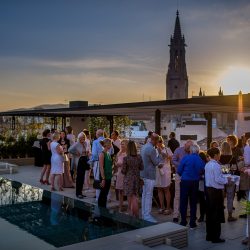 Mit ihren wundervollen Blicken auf die Altstadt von Palma, war die Panoramaterrasse des Hotel Sant Francesc, das den Event in Zusammenarbeit mit Helen Cummins veranstaltete, die gemeinsam mit der Hoteldirektorin Ilka Karl eine exklusive Gruppe von Gästen eingeladen hatte, Kulisse für die Eröffnungsparty der Sushibar auf der Dachterrasse zum Saisonbeginn. Aigner bedachte alle Geladenen mit einem Geschenk.