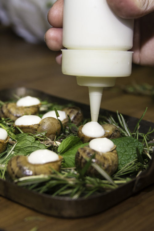 „Wie konnte man nur anfangen, Schnecken zu essen?“, fragt Santi und lacht dabei. „Auf Mallorca litten die Menschen lange Zeit Hunger, da hat man so gut wie alles gegessen“, erklärt er. Es ist erfrischend mit jemandem zu sprechen, der die eigene Kultur mit Ironie betrachten kann, obwohl es die mallorquinische Geschichte ist, die ein wichtigeres Werkzeug ist, als das Messer in seiner Küche ist. Was wir aus Frankreich als Delikatesse kennen, ist auf Mallorca ein Gericht, das aus der Not geboren wurde. Eine andere Geschichte erzählt der Tocino de Cielo, eine süße Eierspeise. „Ursprünglich kommt der Tocino de Cielo aus den Klöstern, da diese zum einen viele Hühner besaßen, zum anderen oftmals Eier als Dankesgabe erhielten. Es gab also immer viel zu viele Eier.“