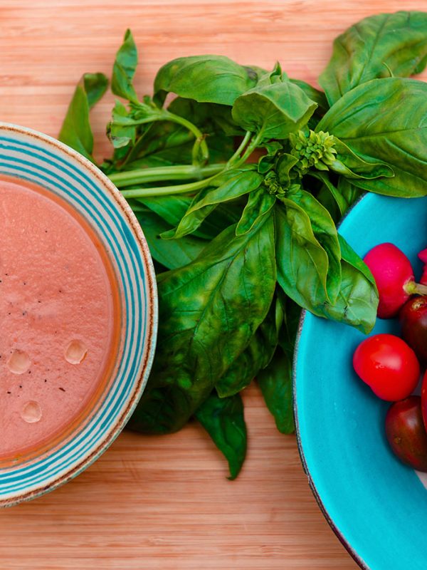 Erdbeer-Gazpacho macht sich auf einem sommerlich gedeckten Tisch immer gut. Fein in Farbe und Geschmack und einfach zuzubereiten.