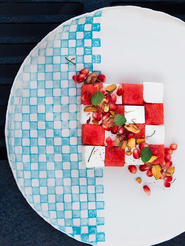 Die verspielte Präsentation verleiht diesem super einfachen Wassermelonen-Fetasalat etwas ganz Besonderes. Viel Spaß in Ihrer Sommerküche!