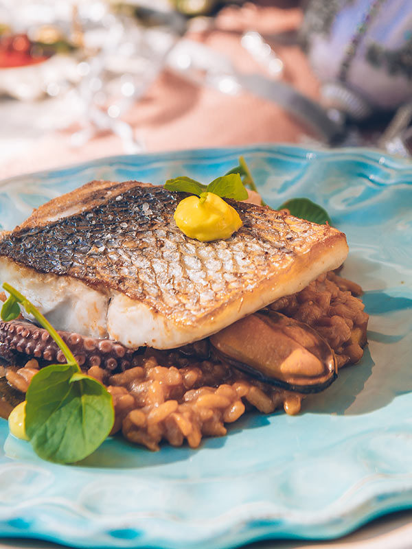 Die traditionelle Paella ist die Basis des Rezepts. Durch die Safranalioli wird es zu etwas ganz Besonderem.