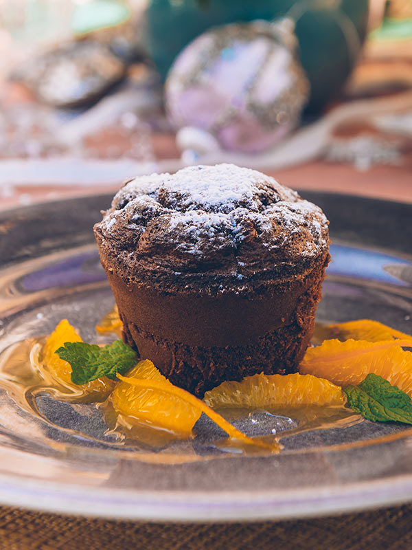 Bei diesem Rezept für Turron-Soufflé bilden marinierte Orangen aus Sóller einen zitrusartigen Kontrast zum süßen Nougat.
