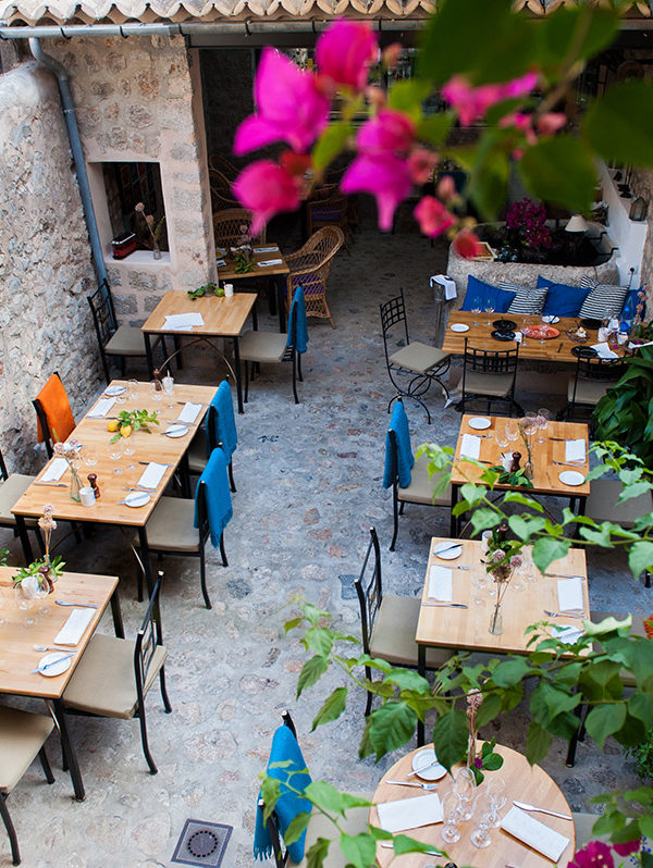 Wenn man im hellen und luftigen Restaurant Sa Tafona im Hotel Ca’l Bisbe sitzt, kann man sich vorstellen, dass es einst eine Olivenpresse war. Die traditionelle Umgebung spiegelt sich auch in der Speisekarte wieder: mediterranes Ambiente, begleitet von einem herrlichen Blick auf den Garten und die Berge. Im Sommer können die Gäste auf der nach Blumen duftenden Terrasse essen.