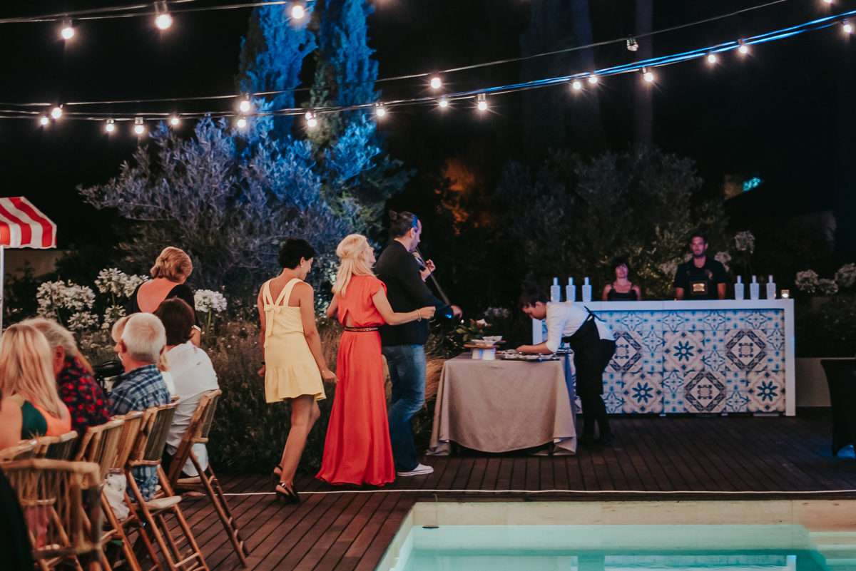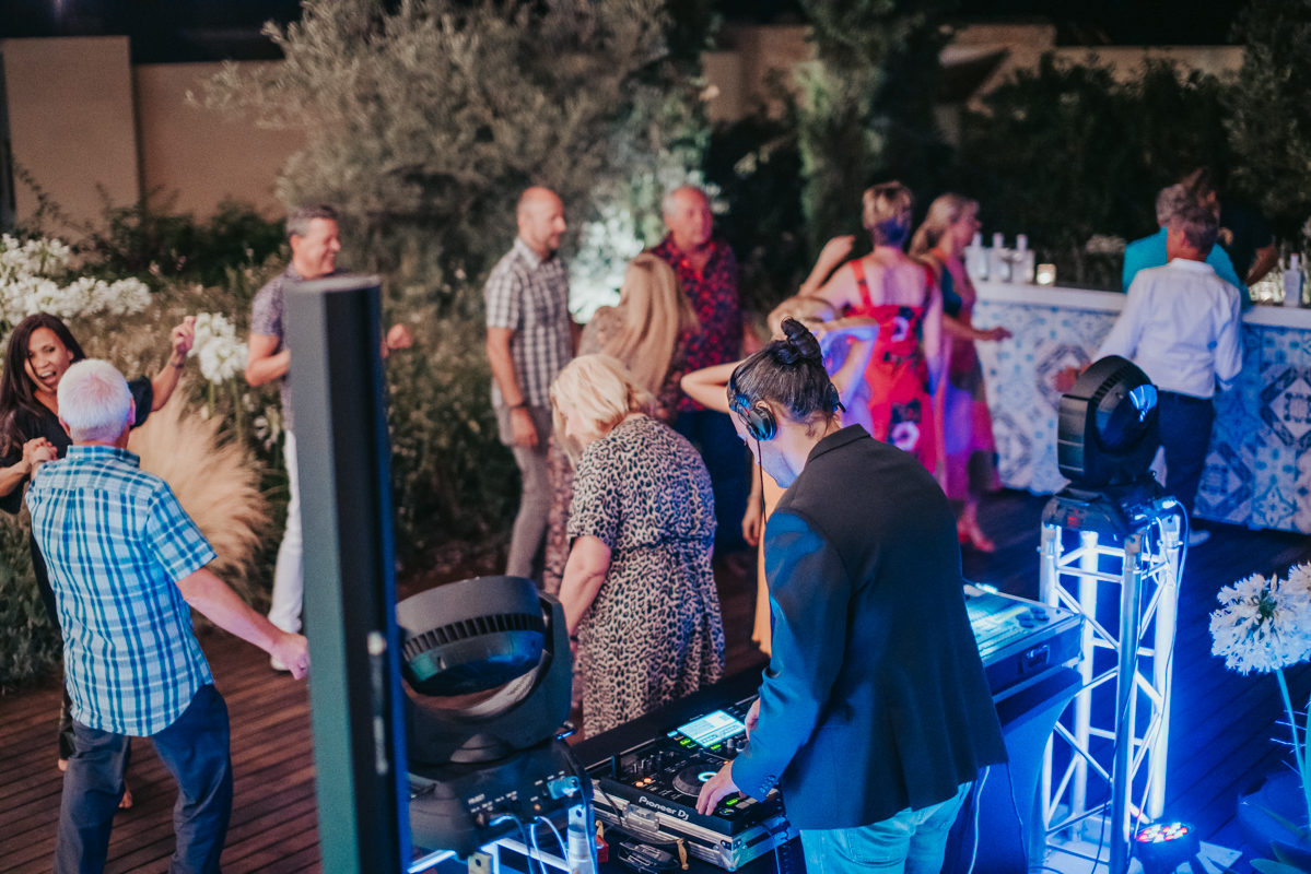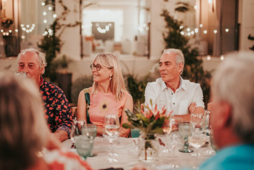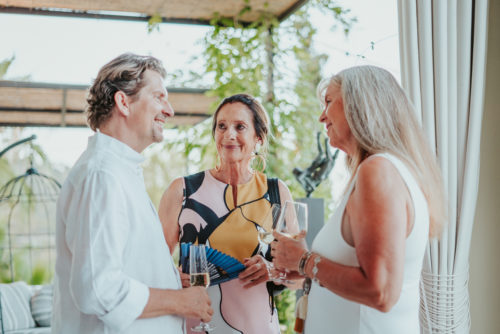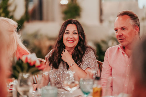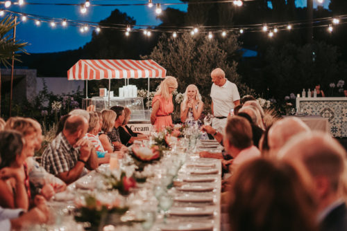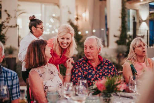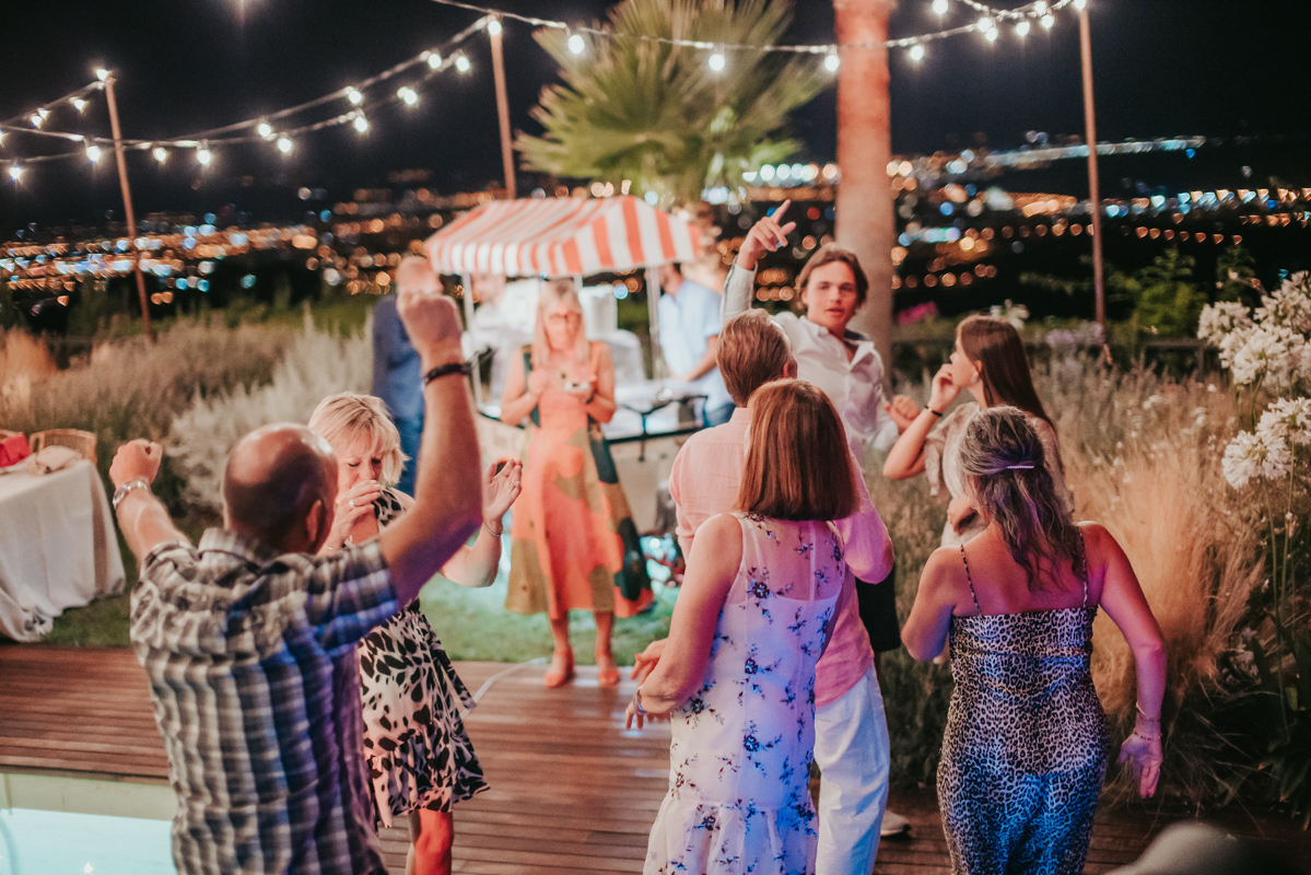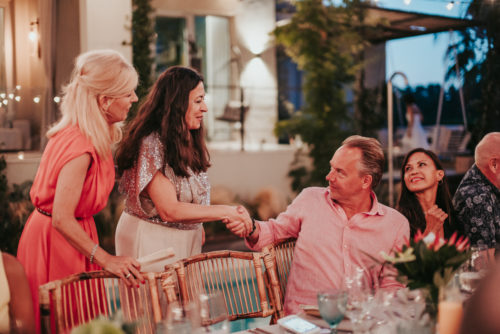 Helen und ihr Mann Georg begrüßten ihre engsten Freunde herzlich an einem wunderschön gedeckten Tisch, an dem sie ein köstliches Abendessen genossen. Die Party ging bis in die späten Abendstunden weiter, wo die Gäste zur Musik von A. Alvarez, weitere Cocktails und – zweifellos – das beste Eis der Insel genossen.