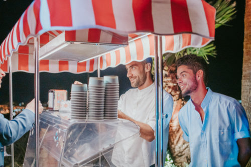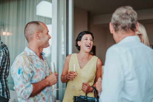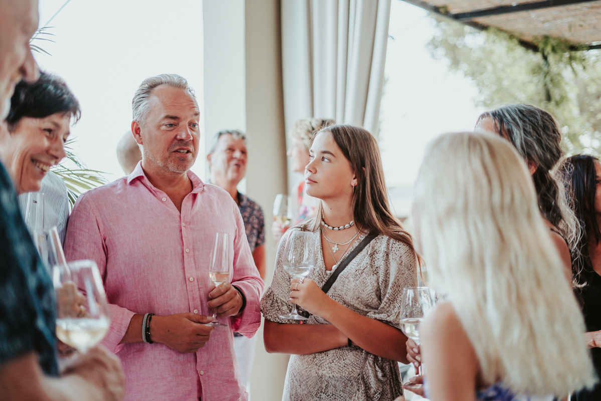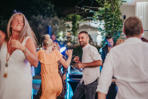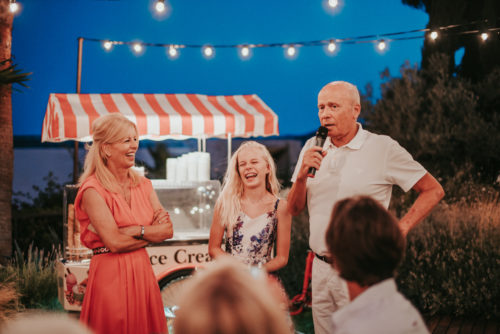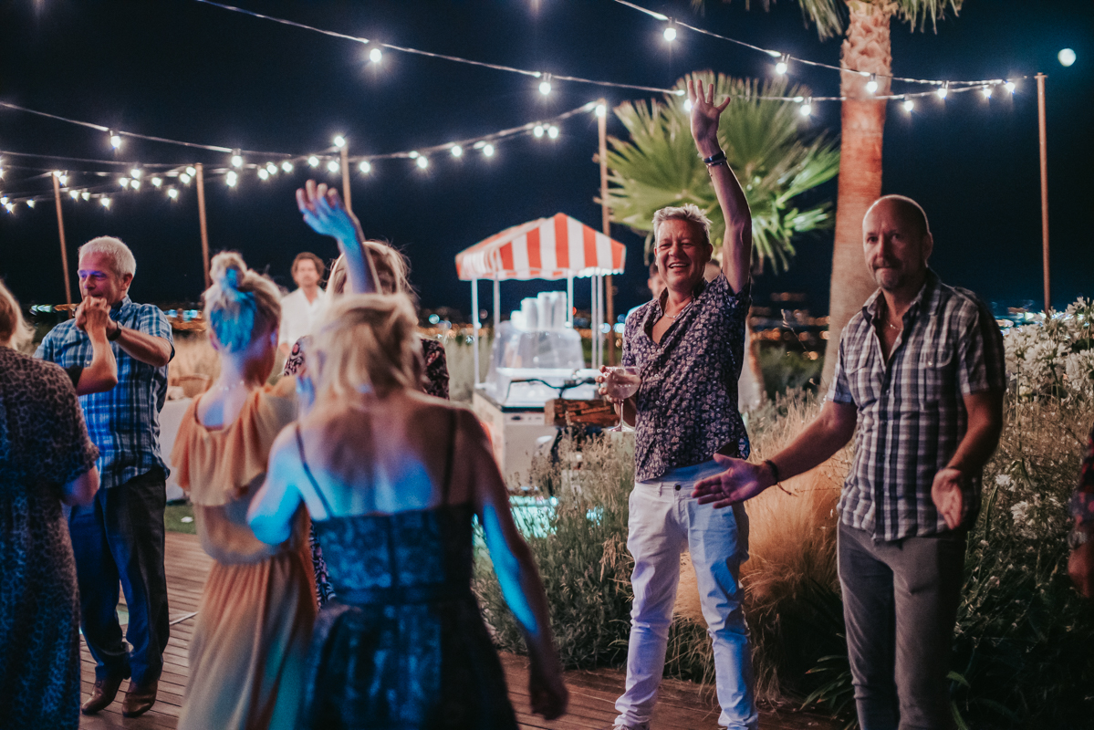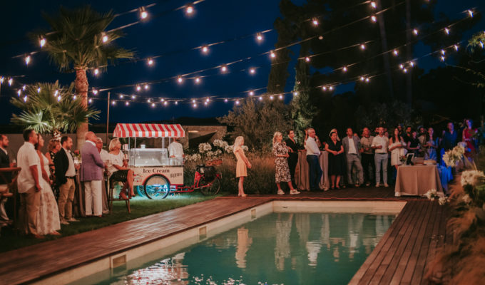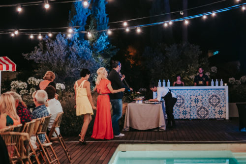 Helen und ihr Mann Georg begrüßten ihre engsten Freunde herzlich an einem wunderschön gedeckten Tisch, an dem sie ein köstliches Abendessen genossen. Die Party ging bis in die späten Abendstunden weiter, wo die Gäste zur Musik von A. Alvarez, weitere Cocktails und – zweifellos – das beste Eis der Insel genossen.