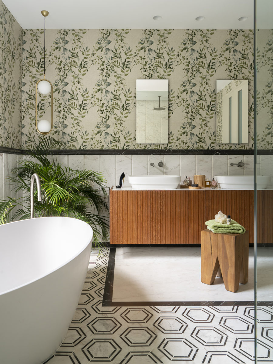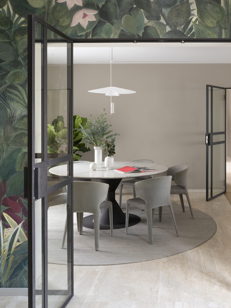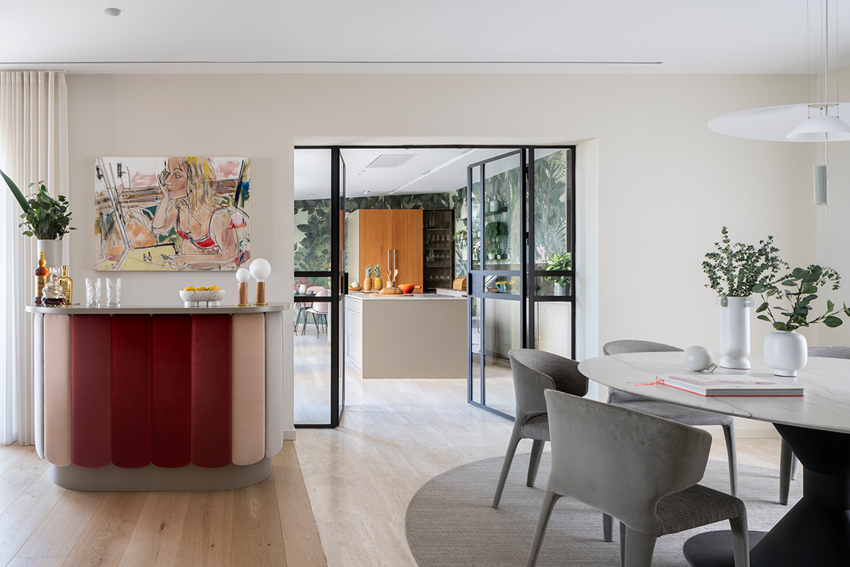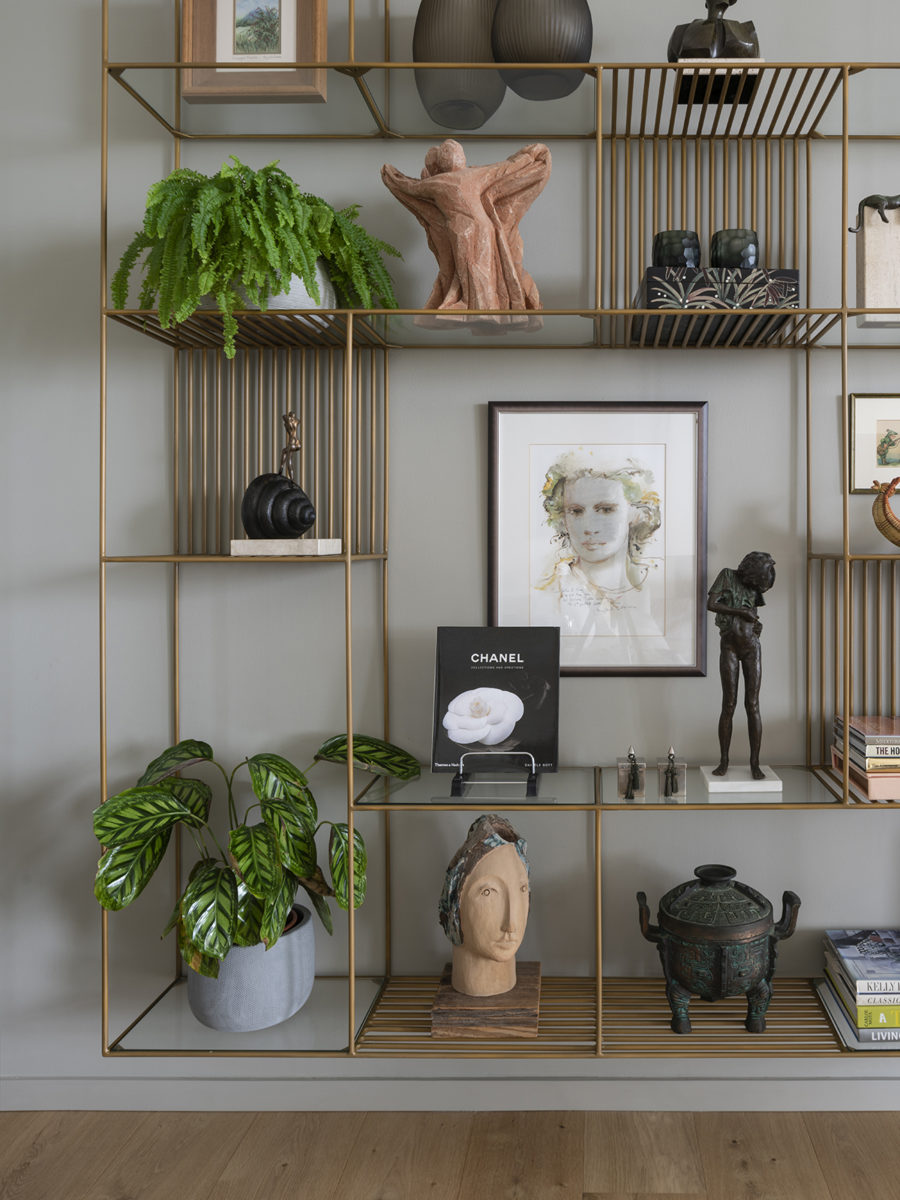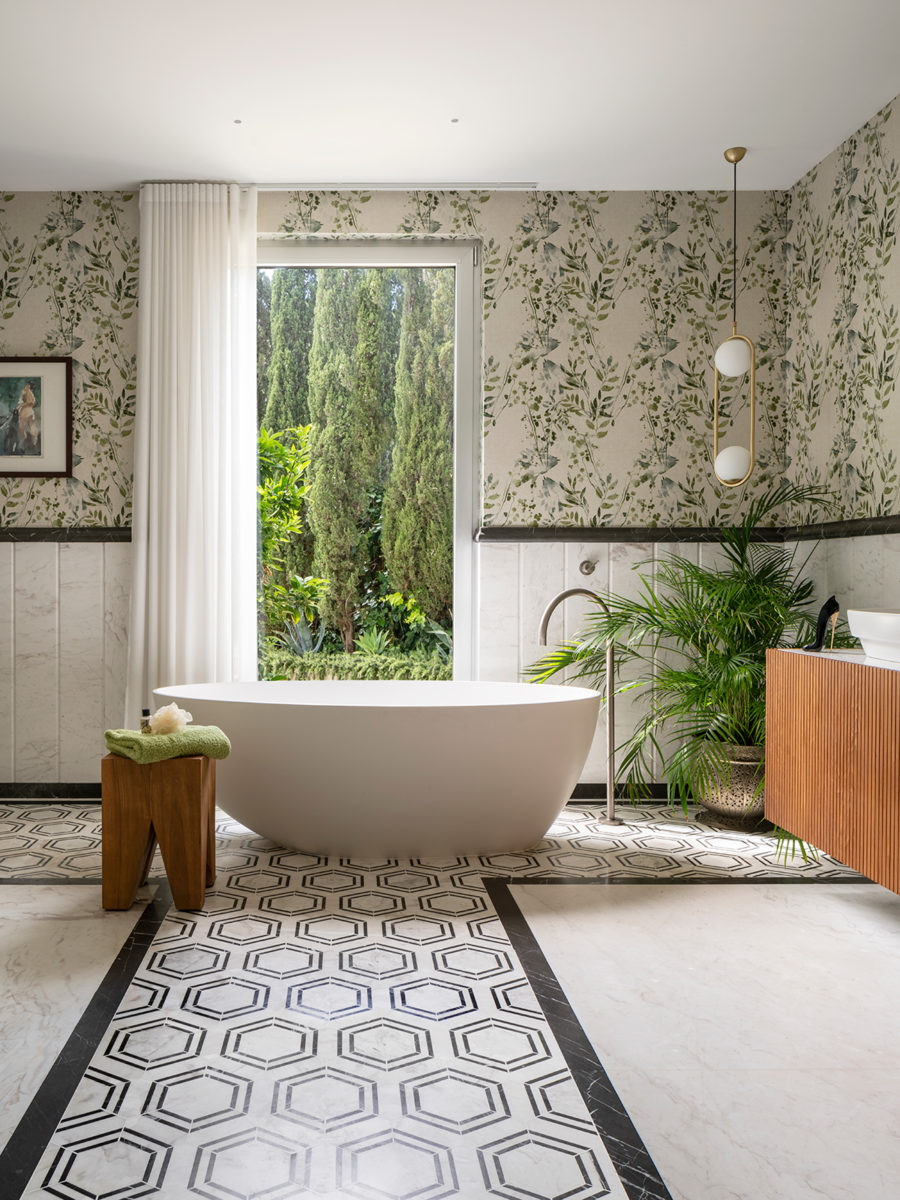Nachdem Andrea Helen geholfen hatte, alle benötigten Einrichtungsgegenstände zu beziehen, war der letzte Schritt, die Meinung der Feng-Shui-Expertin Natalie Jürges einzuholen. In diesem Teil beurteilte Natalie den Energiefluss im ganzen Haus und sorgte dafür, dass Helen das “gemütliche und wohnliche” Gefühl bekam, das sie sich wünschte. Um dies zu erreichen, integrierte Natalie mehr Holz in das Haus (das für Gesundheit und Wohlstand stehen soll) und fügte Bilder und Muster für zusätzliche Wärme hinzu. Kunstwerke der einheimischen Künstler Joan Ávila und Francesca Martí halfen dabei ebenso wie das Hinzufügen von Glamora-Tapeten in der Küche und im Schlafzimmer. “Natalie hat das Ganze völlig entspannt, indem sie nur einige sehr kleine Änderungen vornahm”, sagt Helen. Sie zieht einige Beispiele heran, darunter die Neupositionierung des Fernsehers, das “richtige Blau” in Helens Büro und die Gestaltung der Stufen zum Pool, “die sich natürlich anfühlen”.