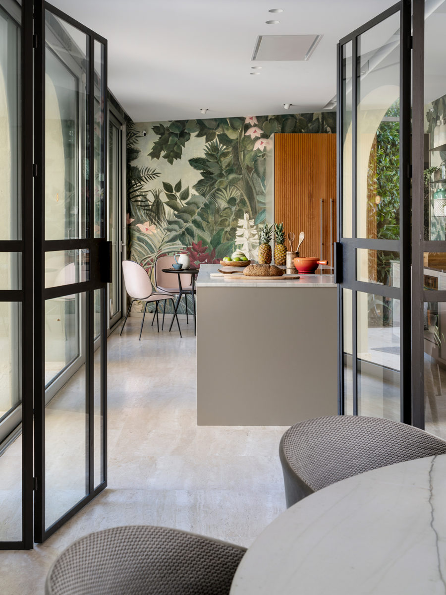 Die Arbeitsbeziehung zwischen Helen und Andrea setzte sich über die Jahre hinweg fort, wobei sie sich oft in verschiedenen Inneneinrichtungsgeschäften in Palma trafen und die Artikel gemeinsam aussuchten. Der Schwerpunkt für beide war es, ein Zuhause zu schaffen, in dem sich die ganze Familie rundum wohl fühlen sollte – etwas, das laut Helen dem Haus vorher fehlte. Andrea half Helen bei der Beschaffung von Artikeln aus ihrer eigenen Kollektion im Organic Studio in La Lonja sowie bei anderen Designfirmen – die meisten davon mit Sitz auf Mallorca. So wurde zum Beispiel der runde Tisch in der Bibliothek von Contain und der Sessel von Gallery Red bezogen. Dabei war es Ihnen wichtig, dass Helen und Andrea so lokal wie möglich einkaufen konnten. Die Küche von Cocinart by Espacio Home Design war eine der größten Investitionen, die getätigt wurde.