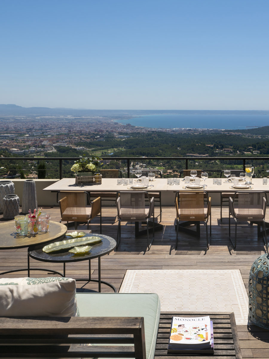 Das Wohnhaus von Helen Cummins befindet sich hoch oben in den Hügeln von Son Vida mit Blick auf Palma. Das 4-Schlafzimmer-Haus hat sich seit dem Kauf durch Helen und Ehemann Georg im Jahr 2001 erheblich verändert. Im Laufe der Jahre wurden Teile des Hauses modernisiert, um der Ankunft ihrer Tochter Eva und den berühmten gesellschaftlichen Events, die dort stattfinden, Rechnung zu tragen. Die größte Veränderung kam jedoch 2016, als Helen beschloss, das Haus mit den besten Designern und Landschaftsgärtnern zu renovieren. Die Innenarchitektin Andrea Pussin, der Gärtner Stephen Woodhams und die Feng-Shui-Expertin Natalie Jürges. Das Ergebnis all dieser Arbeiten, kombiniert mit Helens eigenem Gespür für Design, ist ein Zuhause, das ideal für das mediterrane Familienleben ist. Ein Ort, der laut Helen voller “guter, positiver Energie” ist.