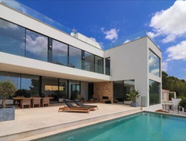 Entdecken Sie diese moderne Villa mit hochwertiger Ausstattung, einem Pool und außergewöhnlichen Wohnräumen in Son Quint, in der Nähe der Golfplätze von Son Vida.