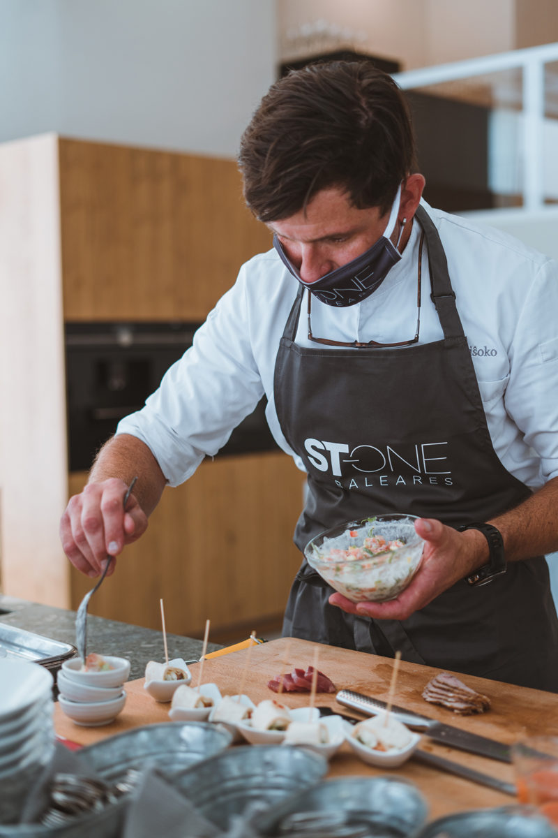 Die Besucher hatten bei der Eröffnung des Flagship-Stores von ST-ONE Baleares die Möglichkeit, ihre Kollektion von Natursteinküchen zu besichtigen. Klaus Sladko, Ole Bestmann und ihr Team begrüßten alle Gäste mit kühlen Getränken und leckeren Tapas. Zur Mittagszeit präsentierte Emmerich Reutter eine Kochshow, bei der die Arbeitsplatten und Geräte von ST-ONE Baleares vorgestellt wurden.