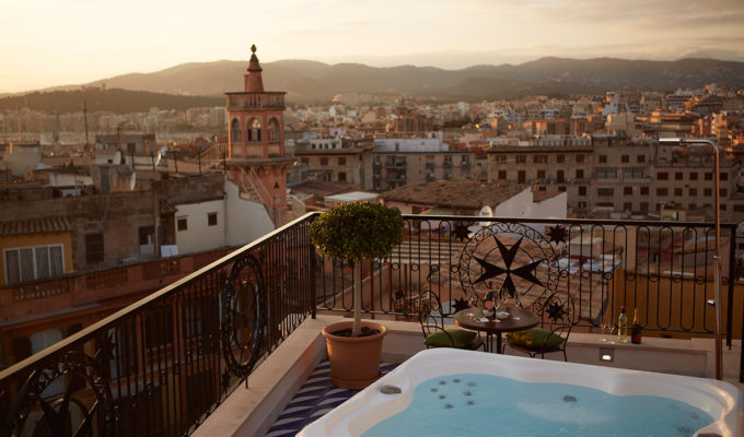 Am prächtigsten gestaltet ist die Parietti-Suite mit einem Deckenfresko vom mallorquinischen Künstler Francesc Parietti aus dem 19. Jahrhundert. Wer dieses Zimmer bucht, bekommt dazu einen Porsche Macan S zur vollen und alleinigen Nutzung. Und wenn einen der Stress nach dem Check-in immer noch begleitet, so verschwindet er spätestens unter der gewölbten Decke des Wellness Spa.