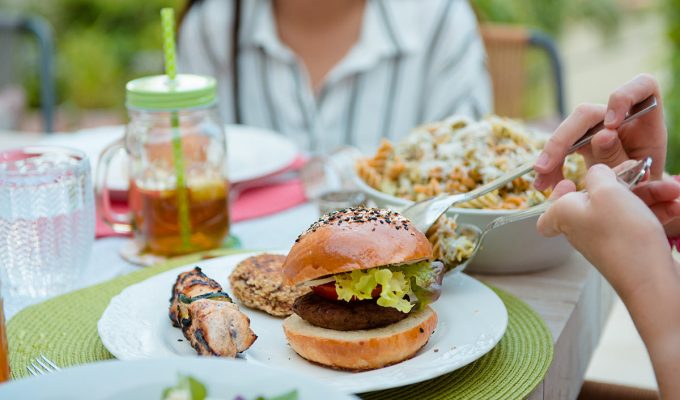 Etwas Rucola auf dem Schüsselboden verteilen und mit Basilikumöl beträufeln. Einen Teil der Tomaten dazugeben, danach Mozzarella und einige marinierte rote Zwiebeln. Eine weitere Schicht Tomaten aufgeben und mit Radieschen, Rucola und roten Zwiebeln verzieren. Abschließend großzügig mit Basilikumöl beträufeln.