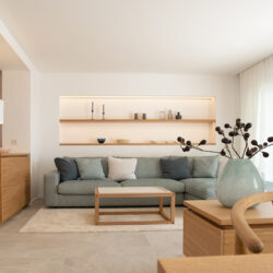 Neben der Entkernung, Sanierung und Neustrukturierung des Gebäudes wurde das Meergrundstück im Südosten komplett neugestaltet. Im Haus verschmelzen jetzt Küche, Wohnen und Eingangsbereich zu einer großzügigen Einheit. Natürliche Materialien wie Eichenholz, Naturstein und Leinenstoffe bestimmen die harmonische wie klare Innenarchitektur.