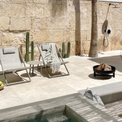„ Wir wollten von Anfang an den Charme des Gebäudes bewahren“, erklärt Mikel, „und uns von ihm inspirieren lassen, um das Haus einzurichten.“ So suchten sie bei der Auswahl der Möbel nach zeitlosen Stücken, die das Haus in Qualität und Stil begleiten sollten. Und bei der Farbpalette ließen sie sich von den Farben Mallorcas inspirieren, mit einer Mischung aus beruhigenden neutralen Tönen, die subtil zwischen Beige, Taupe und Grau variieren und allen Räumen eine warme und entspannte Atmosphäre verleihen. Recyceltes Teakholz verleiht dem Ganzen einen umweltfreundlichen, rustikalen Charme.