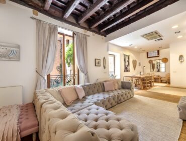 Rare designer loft for sale in Palma’s old town with a unique living area, original arches, and tranquil patio.